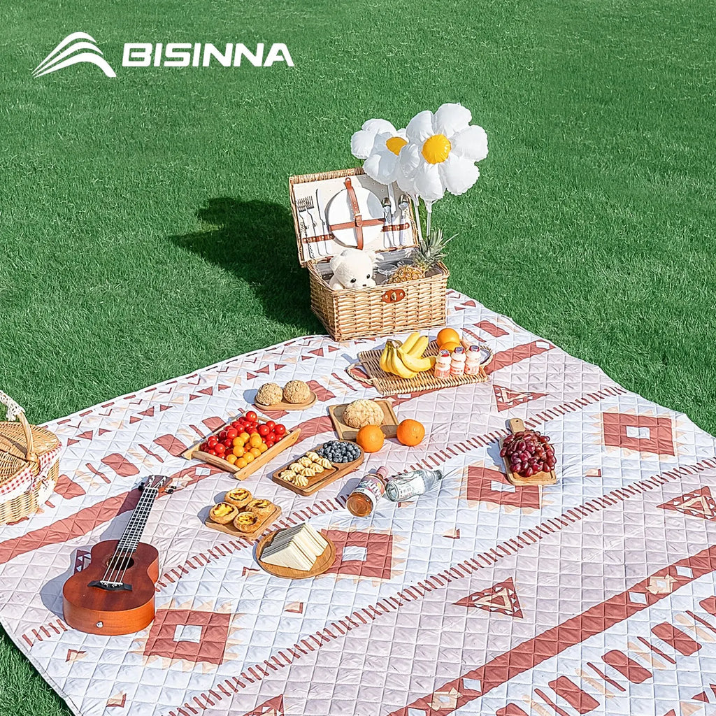 BISINNA - Tapete de Piquenique com Tecnologia Ultrassônica, Acampamento Ao Ar Livre, Dobrável, Portátil, Lavável na máquina