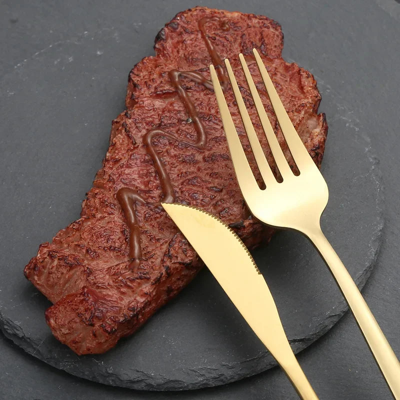 Louça de aço inoxidável, preto, dourado, faca, garfo de frutas, colher, talheres, utensílios de cozinha, 30pcs