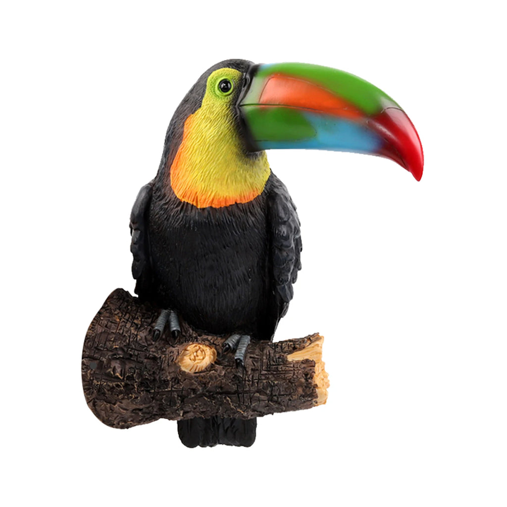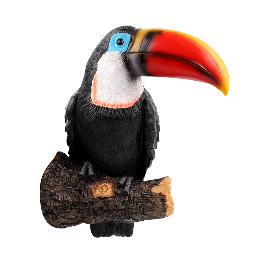 Tucano Resina estátua de jardim, escultura em pé de animal realista, ornamentos de árvore, estatueta de pássaro de resina tou
